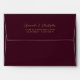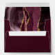 The inside of this elegant modern wedding invitation envelope features a burgundy watercolor agate design trimmed with faux gold glitter. Customise the back flap with the couple's names in stylish gold-coloured handwriting script and the return address in sans serif font on a burgundy background.