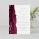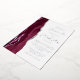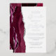 The left-hand edge of this elegant modern wedding invitation features a burgundy watercolor agate border trimmed with faux silver glitter. The customisable text combines script and sans serif fonts in real silver foil on a white background. The reverse side features a matching agate design.