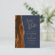 This elegant modern save the date postcard features a burnt orange watercolor agate border trimmed with faux gold glitter. Easily customise the gold coloured text on a dark navy blue background. The reverse side repeats the information, along with a customisable return address.