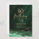 Emerald green and gold agate 90th birthday party invitation. Elegant modern design featuring watercolor agate marble geode background, faux glitter gold and typography script font. Trendy invite card perfect for a stylish women's bday celebration. Printed Zazzle invitations or instant download digital printable template.
