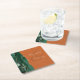 This elegant modern wedding coaster features an emerald green watercolor agate geode design trimmed with faux gold glitter. Easily customise the gold-coloured text on a burnt orange or rust background, with the names of the bride and groom in handwriting calligraphy over a large ampersand.