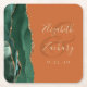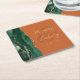 Agate Emerald Green Gold Burnt Orange Wedding Square Paper Coaster