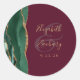 Agate Emerald Green Gold Script Burgundy Wedding Classic Round Sticker