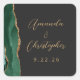 Agate Emerald Green Gold Script Dark Wedding Square Sticker
