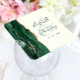 This elegant modern wedding coaster features an emerald green watercolor agate geode design trimmed with faux gold glitter. Easily customise the green text on an ivory background, with the names of the bride and groom in handwriting calligraphy over a large ampersand.