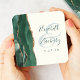 Agate Emerald Green Ivory Gold Script Wedding Square Paper Coaster