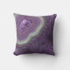 Wavy bands of colour in shades of shades of violet purple and green with a centre of glittering crystal form a geode/agate accent on the corner of this decorative throw pillow. An abstract reminiscent of stone veined with glitter in shades of violet purple provides a coordinating background. Search ID647 to see all the coordinating pieces in this set.