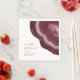 Not all wedding designs are created equal. The asymmetrical layouts for some of the pieces in this striking wedding set prove that's a good thing!. The coordinating wedding paper napkin shown here features a corner accent with wavy bands of colour in shades from burgundy to soft pink around a glittering crystal effect to forming a geode/agate. Easily add your names, wedding date and personal 'thank you' message using the provided template. Search ID647 to see all the coordinating pieces in this set.