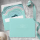 Not all wedding designs are created equal! The asymmetrical layouts for the pieces in this striking wedding set prove that. Wavy bands of colour in contrasting shades of teal blue and blush pink circle a glittering crystal effect to form a geode/agate accent for the interior of this matching envelope. The reverse also allows you to add the bride and groom's names address. Search ID647 to see all the coordinating pieces in this set.
