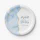 Agate Geode Script Baby Blue Gold Wedding Paper Plate