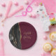 These elegant modern wedding plates feature a black watercolor design trimmed with faux gold glitter. Easily customise the gold-coloured text on a burgundy background, with the names of the bride and groom in handwriting calligraphy over a large ampersand.