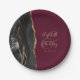 Agate Geode Script Black Gold Burgundy Paper Plate
