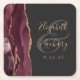 Agate Geode Script Burgundy Gold Dark Wedding Square Paper Coaster
