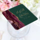 Agate Geode Script Burgundy Gold Green Wedding Square Paper Coaster