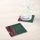 This elegant modern wedding coaster features a burgundy watercolor agate geode design trimmed with faux gold glitter. Easily customise the gold-coloured text on an emerald green background, with the names of the bride and groom in handwriting calligraphy over a large ampersand.