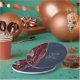 These elegant modern wedding plates feature a burgundy watercolor design trimmed with faux gold glitter. Easily customise the gold-coloured text on a navy blue background, with the names of the bride and groom in handwriting calligraphy over a large ampersand.