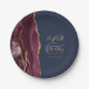 Agate Geode Script Burgundy Gold Navy Blue Paper Plate