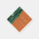 These elegant modern wedding napkins feature an emerald green watercolor design trimmed with faux gold glitter. Easily customise the gold-coloured text on a burnt orange or rust background, with the names of the bride and groom in handwriting calligraphy over a large ampersand.