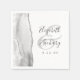These elegant modern wedding napkins feature a grey and white watercolor agate geode design trimmed with faux silver glitter. Easily customise the charcoal grey text on a white background, with the names of the bride and groom in handwriting calligraphy over a large, light grey ampersand.