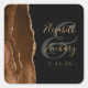 Agate Geode Script Mocha Brown Gold Black Wedding Square Sticker