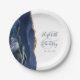 Agate Geode Script Navy Blue Gold Wedding Paper Plate