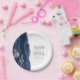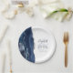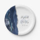 Agate Geode Script Navy Blue Silver Wedding Paper Plate