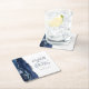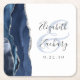 Agate Geode Script Navy Blue Silver Wedding Square Paper Coaster