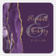 Agate Geode Script Purple Gold Plum Wedding Square Sticker