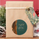 This elegant modern wedding sticker features a burnt orange and rust watercolor agate geode design trimmed with faux gold glitter. Easily customise the gold-coloured text on a dark emerald green background, with the names of the bride and groom in handwriting calligraphy over a large ampersand.