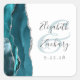 Agate Geode Script Teal Blue Silver Wedding Square Sticker