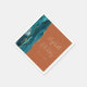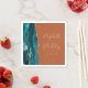 These elegant modern wedding napkins feature a teal watercolor design trimmed with faux gold glitter. Easily customise the gold-coloured text on a burnt orange background, with the names of the bride and groom in handwriting calligraphy over a large ampersand.