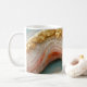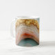 A decorative realistic style pastel pink and teal agate design featuring gold glitter.