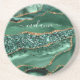 Agate Green Gold Glitter Geode Marble Custom Name Coaster