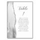 The left-hand edge of this elegant modern wedding table number card features a grey and white watercolor agate border trimmed with faux silver glitter. The word "table" appears in charcoal grey handwriting script on a white background. Add the names of your guests who are assigned to each table.