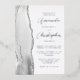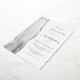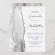 The left-hand edge of this elegant modern wedding invitation features a grey watercolor agate border trimmed with faux silver glitter. The customisable text combines script and sans serif fonts in real silver foil on a white background. The reverse side features a matching agate design.