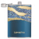The flask itself is fine. It’s a cheap flask, obviously bought in bulk, however am prepared to overlook that. Given that it is a personalized item, I would have liked to have seen gift boxing instead of the generic packaging. Terrible printing, and/or quality. It’s a cheap, tacky vinyl. It is not cut straight and is also applied in a way that it is overhanging the bottom, causing the glue to catch on items and it will eventually roll and tear, damaging the wrap.