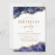 Agate Geode Turquoise Navy Blue and Gold Foil Birthday Party Invitations - includes modern beautiful and elegant script for the special Any Age 13th, 15th, 16th, 18th, 21st, 30th, 40th, 50th, 60th, 70th, 80th, 90th or 100th Birthday Celebration.