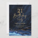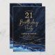 Navy blue and gold agate 21st birthday party invitation. Elegant modern design featuring royal blue watercolor agate marble geode background, faux glitter gold and typography script font. Trendy invite card perfect for a stylish women's bday celebration. Printed Zazzle invitations or instant download digital printable template.