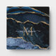 Agate Navy Blue Gold Gemstone Marble Monogram Name Plaque
