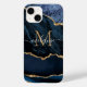 Agate Navy Blue Gold Marble Your Name Letter Gift Case-Mate iPhone Case