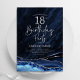Navy blue and silver agate 18th birthday party invitation. Elegant modern design featuring royal blue watercolor agate marble geode background, faux glitter silver and typography script font. Trendy invite card perfect for a stylish women's bday celebration. Printed Zazzle invitations or instant download digital printable template.