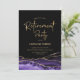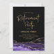 Purple, black and gold agate retirement party invitation. Elegant modern design featuring watercolor agate marble geode background, faux glitter gold and typography script font. Trendy invite card perfect for a stylish women's retirement celebration. Printed Zazzle invitations or instant download digital printable template.