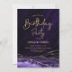 Purple and gold agate birthday party invitation. Elegant modern design featuring watercolor agate marble geode background, faux glitter gold and typography script font. Trendy invite card perfect for a stylish women's bday celebration. Printed Zazzle invitations or instant download digital printable template.