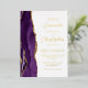 The left-hand edge of this elegant modern wedding invitation features a purple watercolor agate border trimmed with faux gold glitter. The customisable text combines script and sans serif fonts in real gold foil on a white background. The reverse side features a matching agate design.
