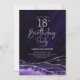Purple and silver agate 18th birthday party invitation. Elegant modern design featuring watercolor agate marble geode background, faux glitter silver and typography script font. Trendy invite card perfect for a stylish women's bday celebration. Printed Zazzle invitations or instant download digital printable template.