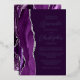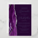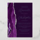 The left-hand edge of this elegant modern wedding invitation features a purple watercolor agate border trimmed with faux silver glitter. The customisable text combines script and sans serif fonts in real silver foil on a plum background. The reverse side features a matching agate design.