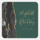Agate Script Black Gold Emerald Green Wedding Square Sticker