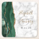 Agate Script Emerald Green Gold Marble Wedding Square Paper Coaster