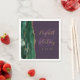 These elegant modern wedding napkins feature an emerald green watercolor design trimmed with faux gold glitter. Easily customise the gold-coloured text on a purple background, with the names of the bride and groom in handwriting calligraphy over a large ampersand.