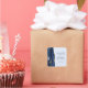This elegant modern wedding sticker features a navy blue watercolor agate geode design trimmed with faux gold glitter. Easily customize the charcoal gray text on a pale blue background, with the names of the bride and groom in handwriting calligraphy over a large ampersand.
